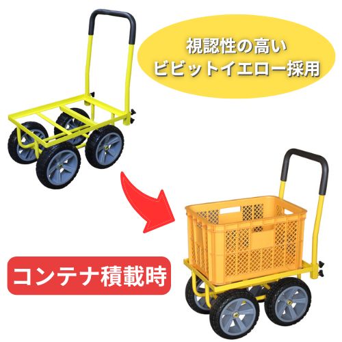 ノーパンク仕様の大きなタイヤ!畑作業での荷物の運搬に便利!