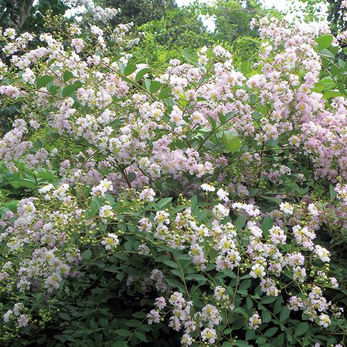 サルスベリはミソハギ科の落葉高木で、中国が原産地といわれています。最近、公園や街路樹でサルスベリが非常に多く見かけられるようになりましたが、これはアメリカでうどんこ病に強い品種が改良され、それが日本にも広まったためでしょう。じつはアメリカで改良された品種の親は、日本の固有品種で屋久島と種子島だけに分布しているヤクシマサルスベリです。