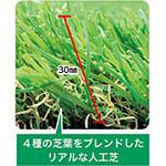 4種の芝生を贅沢な30mmの厚みで使用。裸足で歩けるふわふわリッチな防草人工芝
