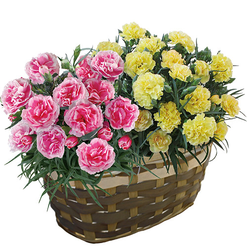 ギフト カーネーション2色バスケット&さかえ屋の蜂蜜かすてら