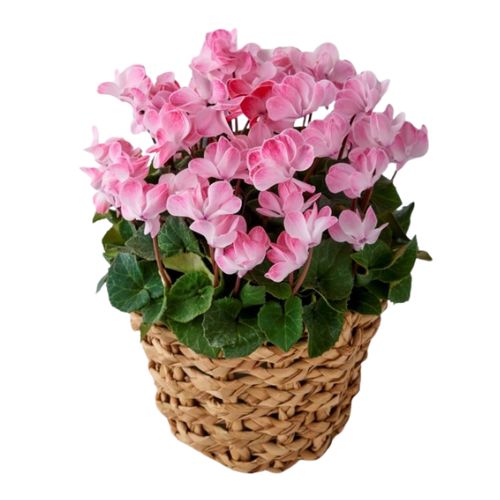 印象的な赤いシクラメン。花数が多く株姿も美しい。