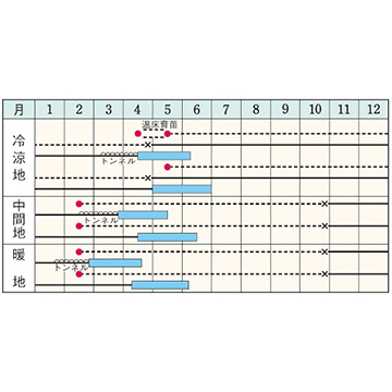 - 野菜品種における耐病性、台木についての記号の説明はこちらをご確認ください。