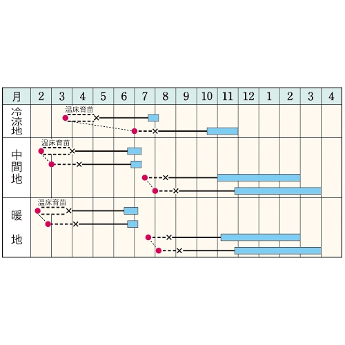 - 野菜品種における耐病性、台木についての記号の説明はこちらをご確認ください。