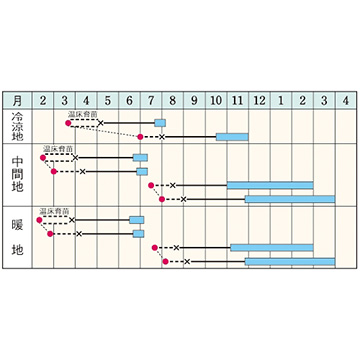 - 花期、収穫期(○○どり)、高さ、収穫重量などの性質は、一般平坦地における適期栽培でのおおよその目安です。