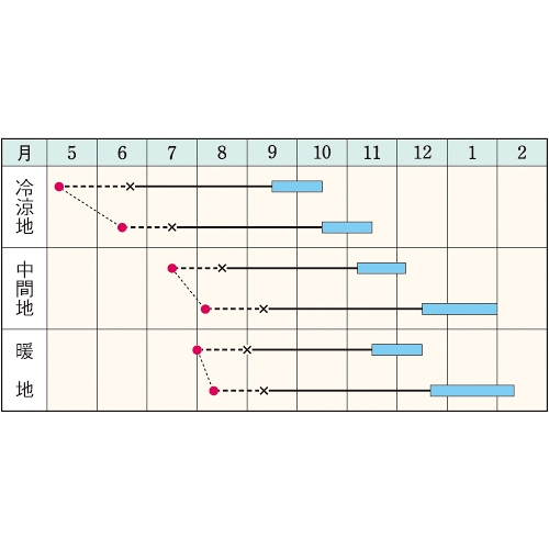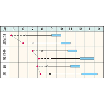 ※収穫期(○○どり)は中間地(平坦地)を基準とした目安です。