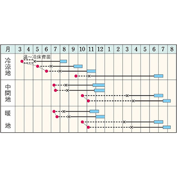 - 野菜品種における耐病性、台木についての記号の説明はこちらをご確認ください。