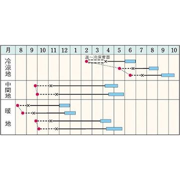 ※収穫期(○○どり)は中間地(平坦地)を基準とした目安です。