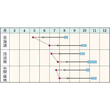 ※収穫期(○○どり)は中間地(平坦地)を基準とした目安です。