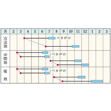 - 花期、収穫期(○○どり)、高さ、収穫重量などの性質は、一般平坦地における適期栽培でのおおよその目安です。