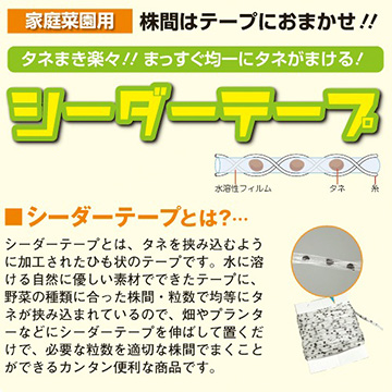 (シーダーテープ:10m巻、株間6cmごと(166カ所)に約4粒詰め。)
