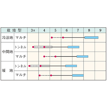 ※熟期は、露地(マルチ)適期まきでの播種から収穫までの目安日数です。(播種時期や天候により多少のズレが出る場合があります。)