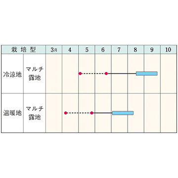 ※熟期は、露地(マルチ)適期まきでの播種から収穫までの目安日数です。(播種時期や天候により多少のズレが出る場合があります。)