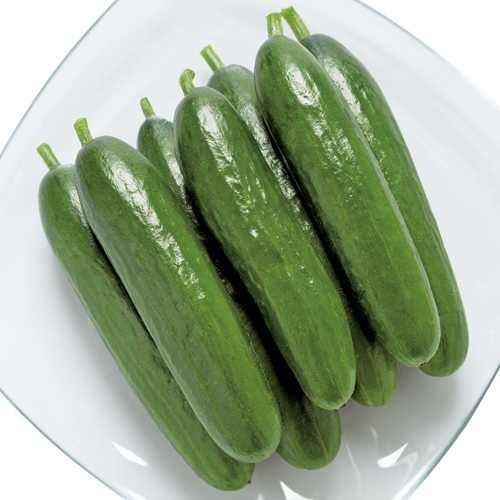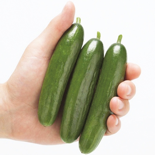 ●果実は長さ9~11cm程度のミニキュウリ。果皮はやわらかく、浅漬けやピクルスにもおすすめ。
