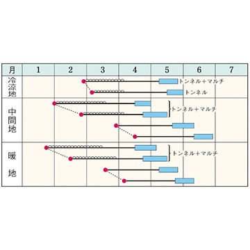 - 花期、収穫期(○○どり)、高さ、収穫重量などの性質は、一般平坦地における適期栽培でのおおよその目安です。