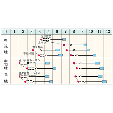 - 野菜品種における耐病性、台木についての記号の説明はこちらをご確認ください。