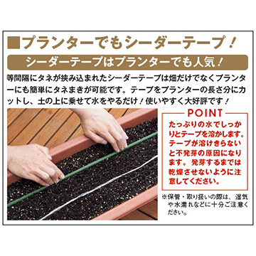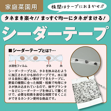 (シーダーテープ:20m巻、株間15cmごと(約133カ所)に約3粒詰め。)
