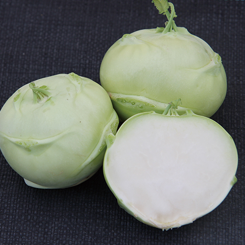 キャベツの一種で丸く肥大した茎を食べる。耐暑・耐寒性は強く栽培は容易。生育スピードが早く、揃いの良い早生種。外観は淡緑色で肉色はクリーム色。肉質はやわらかく、ス入り遅い。6cm~8cm位がオススメの食べ頃、10cm以上になると硬くなってくるので早めに収穫する。