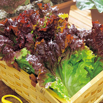 草勢旺盛で作りやすく、ボリュームのある早生種。葉の緑色と赤色の着色に優れる。
