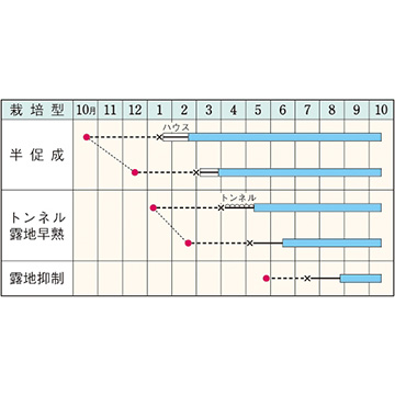 - 野菜品種における耐病性、台木についての記号の説明はこちらをご確認ください。