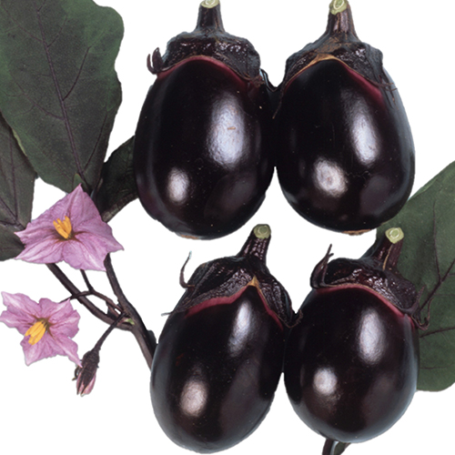 果重は350g前後となるまんじゅう型をしたナス。肉質は緻密で焼きナス、田楽などに向く。