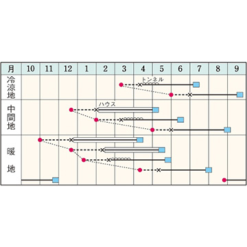 - 野菜品種における耐病性、台木についての記号の説明はこちらをご確認ください。