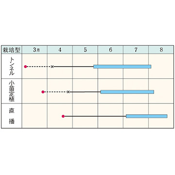 - 花期、収穫期(○○どり)、高さ、収穫重量などの性質は、一般平坦地における適期栽培でのおおよその目安です。