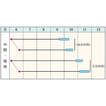 ※早まきしすぎると生育が旺盛になりすぎて、実つきが悪くなることがあります。播種期に注意してください。