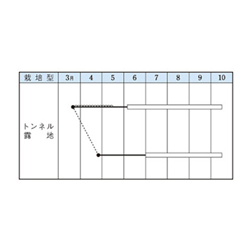 • 花期、収穫期(○○どり)、高さ、収穫重量などの性質は、一般平坦地における適期栽培でのおおよその目安です。