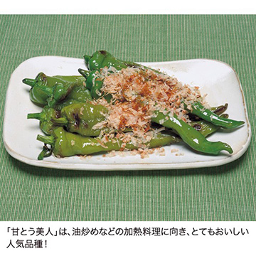 揃いがよく、作りやすい甘長トウガラシ。果実は大きく、曲がり果の発生が少なくて高品質。肉質がやわらかく、食味と風味に優れる。辛味果の発生は比較的少ない。草勢は強めで、分枝の発生が多くたくさんとれる。