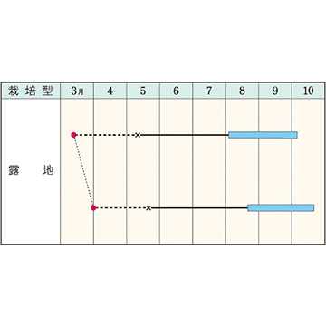- 花期、収穫期(○○どり)、高さ、収穫重量などの性質は、一般平坦地における適期栽培でのおおよその目安です。