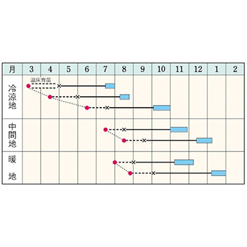 - 花期、収穫期(○○どり)、高さ、収穫重量などの性質は、一般平坦地における適期栽培でのおおよその目安です。