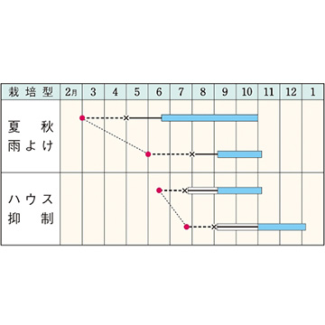- 野菜品種における耐病性、台木についての記号の説明はこちらをご確認ください。