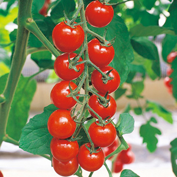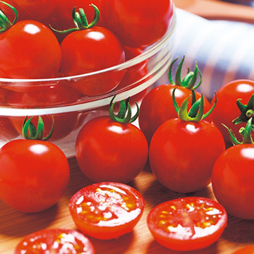 「千果」タイプのミニトマトで、葉かび病(Cf9)、斑点病耐病性品種。果色はツヤが美しい鮮赤色。糖度が高く、おいしい。