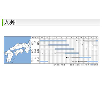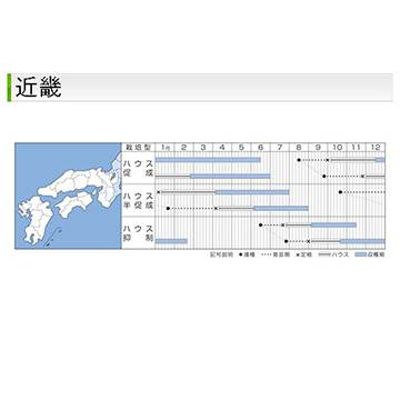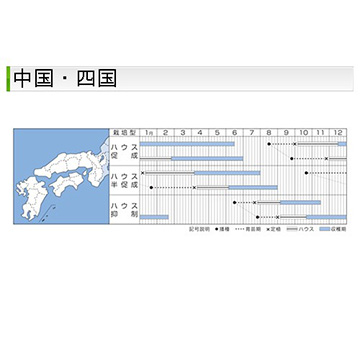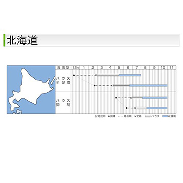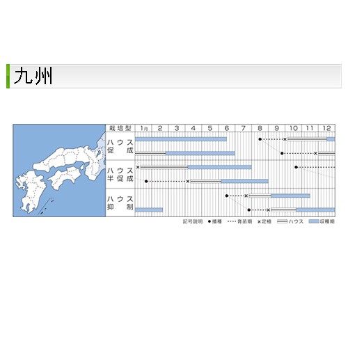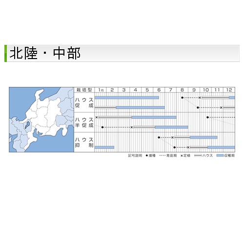 ※促成栽培とは収穫の前進をねらって、育苗から収穫が終わるまで、ハウスあるいは温室で加温するプロ向きの栽培方法です。