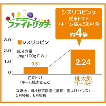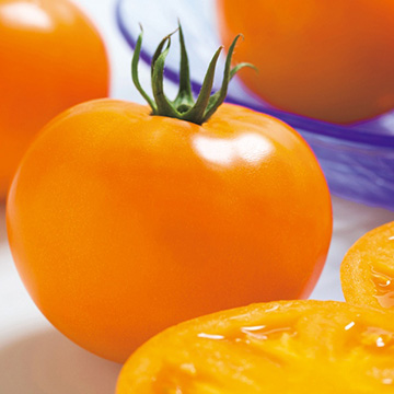 鮮やかな橙黄色の果色が特徴で、料理の彩ってくれます。従来の桃色種に含まれるリコピンよりも、体内に吸収されやすいというシスリコピンを多く含む。草勢がおとなしく、着果性に優れるので作りやすい。