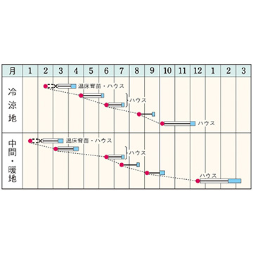 - 野菜品種における耐病性、台木についての記号の説明はこちらをご確認ください。