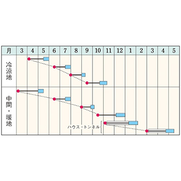 - 花期、収穫期(○○どり)、高さ、収穫重量などの性質は、一般平坦地における適期栽培でのおおよその目安です。