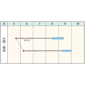 - 花期、収穫期(○○どり)、高さ、収穫重量などの性質は、一般平坦地における適期栽培でのおおよその目安です。