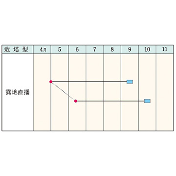 - 花期、収穫期(○○どり)、高さ、収穫重量などの性質は、一般平坦地における適期栽培でのおおよその目安です。