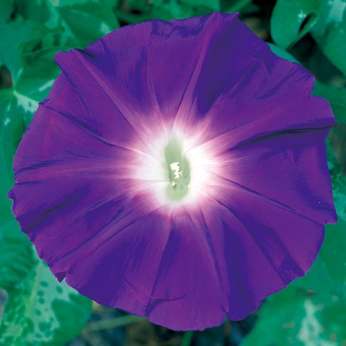 朝顔の中で最も大輪に改良された品種。目の覚めるような紺青花。本葉が10数枚になってからつるが伸び、高温下でよく生育する。