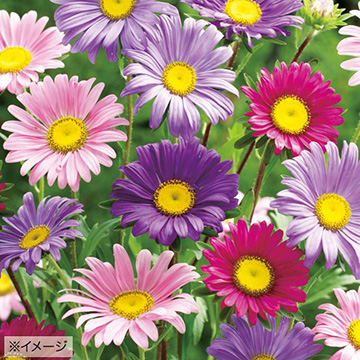 直立高性ほうき立種で、茎がかたく、耐病性がある。切り花・花壇向きの一重咲き混合。
