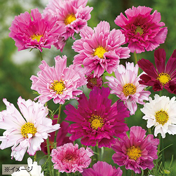 半八重~八重咲きで花色も豊富な人気シリーズ。花径約6cm。花弁が重なるユニークな花が花壇にも切り花にも新しい花材として楽しめる。