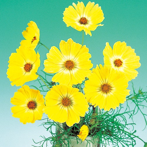 透明感のある鮮やかな黄花が秋に咲く。花径6~7cmの中輪花。茎は緑色。花との調和がよく、切り花・花壇に適する。短日開花性が強く、夏まき10月開花の晩生種。
