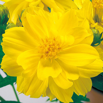 人目をひく可愛らしいレモン色。花弁はセミダブルで分枝性よくコンパクト。多花性で育てやすい。