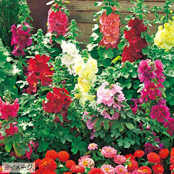 通常のアルセアと比べてコンパクト。八重から半八重の花をつけ、分枝性に優れ次々に開花。タネまき後100~110日で開花。アオイ科