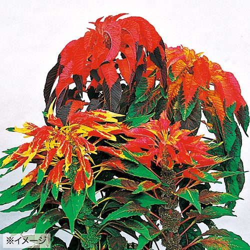 夏から秋にかけて、紅や黄、三色葉へと鮮やかに彩られて、株全体が燃え上がるような美しさを呈します。背が高く花壇の後方で魅力を発揮。ヒユ科