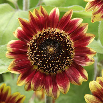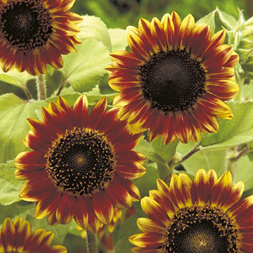 芯黒で花弁が茶褐色で先が黄色になる複色咲き。分枝タイプの草丈約1m。