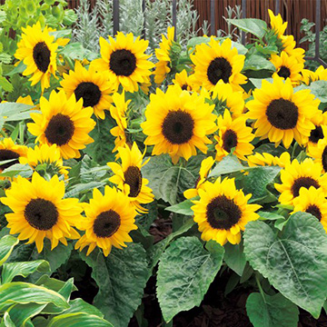 上部で枝分かれして花が次々楽しめる新しいタイプの矮性ひまわり。日長の影響はあまり受けずに適温であれば55日前後で開花する。無花粉で花持ちもよく長期間楽しめる。花壇では草丈30~40cm。ポットや小さな鉢でのミニひまわりも手軽に楽しめる。