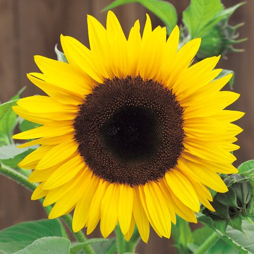 花径約16cmのヒマワリらしい大輪花で、太くがっしりした茎で力強く開花。タネまき後約2ヵ月で開花し、2番花以降も含めると1ヵ月近く咲く。中高性多分枝タイプ。