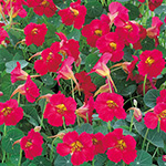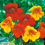 タネまき後70~80日で開花。コンパクトで開花がよく揃う。美しい濃緑の葉と鮮やかな花色が見事に調和する。つるの出にくい矮性種はハンギングや鉢栽培におすすめ。ノウゼンハレン科